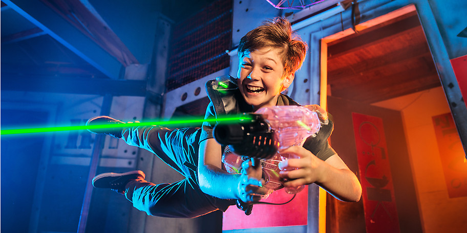 Schleich dich mit deinem Phaser auf 600m² durchs Schwarzlicht, vorbei an Hindernissen und hol mit deinem Team den Sieg! Versteck dich, kürz den Weg ab, phaser die Gegner und sammle Punkte. Das Team mit dem Highscore gewinnt nicht nur das Spiel, sondern auch ewigen Ruhm.